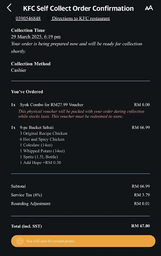 We now go to the KFC in TBS, those staff in TBS are so much better...