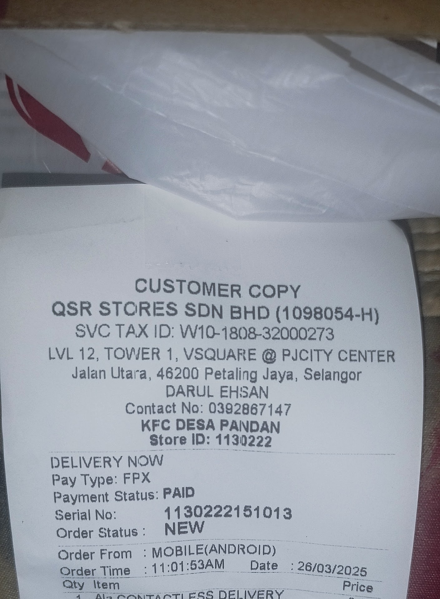 I went over to KFC Desa Pandan for dinner. They were queues and only 1 counter was open. This we understand because there was shortage of staff.