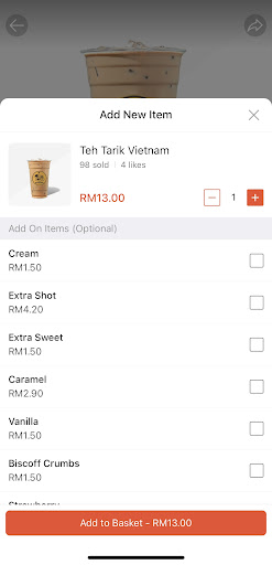 Also, I noticed that your shopee foos app doesnโt have Teh Tarik (regular size) on the menu, while most other branches do. Please...