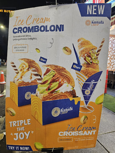 Kunafa Crisp is a popular dessert spot in Bukit Bintang, Kuala Lumpur, renowned for its vibrant orange kunafa topped with vanilla or pistachio ice cream and crushed pistachios. The establishment has gained attention on social media platforms like TikTok and Instagram, attracting both locals and tourists. Despite its small size, the shop often sees long queues, especially during peak hours.