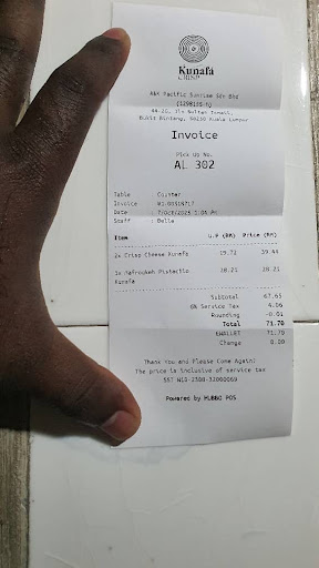 Read moreAs a kunafa lover since 2011 and so far have tried out various places serving kunafa around KL, Shah Alam, Serdang, including in Jordan, Istanbul, Gaziantep, this is the best to be in my mouth if I’d miss and want to taste a kunafa in KL. The texture, the taste, the cheese, i just love it. There are other places with good taste too but If anyone would ask me where would they taste a good kunafa, I’d recommend here.