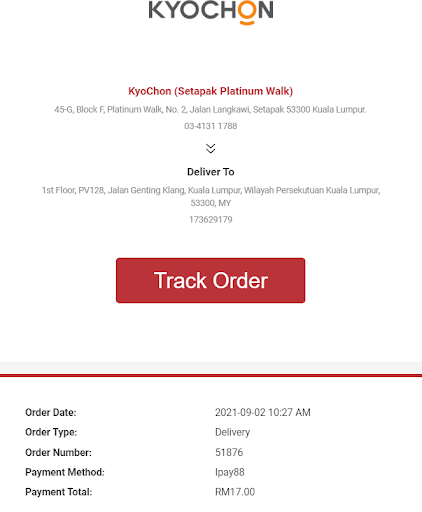 I received a newsletter from Kyochon for the free delivery voucher so I ordered one through the main website and placed my order with the vouchers. I set it for delivery at 12.30 pm (2/92021).