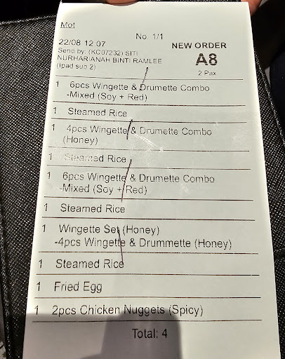 Although I have misplaced the receipt from our visit (which all the details I have attached here, you may actually retrieve the receipt from your systems, For more info: we ordered full set of Tteokbokki and a buy1 free 1 8pcs chicken drummettes and wings set).