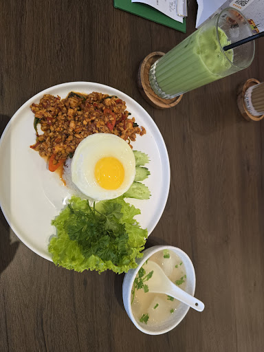 I ordered the Thai Steamed Kampung Chicken Rice, which tasted really good. The green chilli sauce is especially good! Their Thai Iced Green Milk Tea is also good and not too sweet.