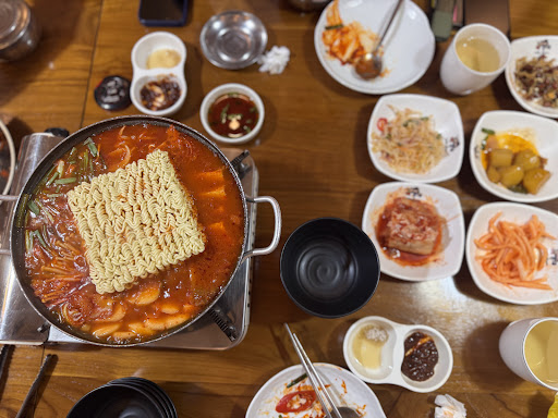 The food is good and reasonably priced. They are generous with the side dishes - kimchi and sauces. Order a main meal, there's a variety of sets of meals for different group size.