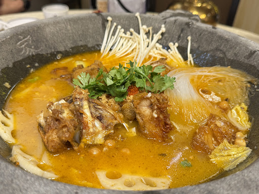 ย ย ย Read moreAm surprised with the food quality. Generally not the strong taste nor oily. We ordered 6 dishes and cost us RM245 (inclusive taxes) Garlic Crab Roe Stone Fish Pot 4๐the fried fish is just crispy and fresh in vegetable soup. Refill of soup is allowed. There are choices of fish. We ordered garoupa fish head. Xinjiang Cumin Hand Torn Rib 3๐ not roasted enough, expecting crispy skin and juicy meat Crispy Dry Potato Slice 4๐ the slices are crispy type like potato chips fried with lots of dried ๐ถ๏ธ Crab Roe Tofu 4๐ soft tofu in crab roe gravy c/w โtong funโ Brown sugar rice cake 3.5๐crispy thin skin with brown sugar filling. We found the filling rather too little. There is another new...