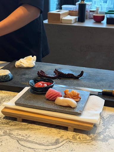 Secondly, due to a special event, we were seated in a separate room. While I understand space adjustments are sometimes necessary, the atmosphere was affected as I noticed staff uniforms placed on top of a side chair within the dining area. This gave the space a less refined and more casual feel, which took away from the otherwise special omakase ambiance.