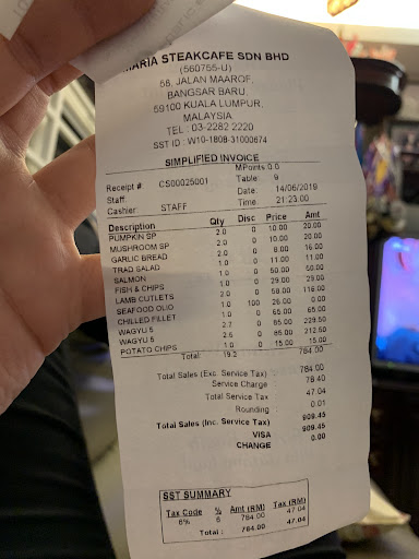 Read moreWe used to be here for all sorts of celebration with family up to 8 or 10 person because of the quality of their steak and chef, also the services. But last week I have been again with my family to celebrate my dad’s birthday, things had changed. Services are still good, steak is good, but the quality of chef seriously need improvements. We ordered lamb cutlets and so, 2 Wagyu 5 steaks (250gm & 270gm), wanted it to be served medium well but both served medium rare. We talked to the staff and they brought it back to the kitchen, then came back with a charred steak which the sides of the steak became dried. One of it is really unacceptable and we reflected to the staff, again. This time they offered to switch with another steak (230gm) which we wanted it to be done in Medium. Ended up when everyone finished their dishes, the steak was served after another great 10minutes. Staff mentioned wanted us to cut it half to show if they cooked it perfectly how we wanted. Maria’s disappoint us by serving a near to rare, it’s not even blue (still cost me around RM230). Staff knew that wasn’t what we asked for, so told us Chef grilled the steak the way he wanted, and it was cooked according to the tenderness of the meat. WOW. If it is so, whats the point of you asking me how would I like the steak to be done?