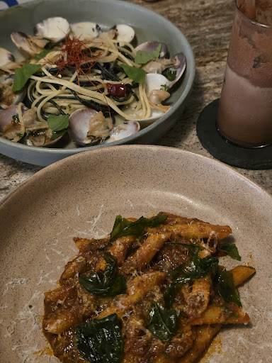 Next, the food. We ordered the Beef Bolognese and the B&W Spaghetti Vongole. The portion size was disappointing – even my girlfriend found it insufficient. The clams in the vongole were not fresh, and some still had sand in them. As for the beef bolognese, it tasted extremely average – just some tomato sauce with minced beef tossed with pasta. Nothing stood out, and it honestly felt like a waste.