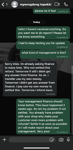 Read morei went there to have a lunch and ordered some food with the app… topped up RM30 to order, after about 10 minutes of waiting me and my partner was impatience due to the time we had waited compare to other franchise was such a big difference… but since it was a weekend we werent rushing and continue waiting for our food. while waiting, we saw the workers were walking around and standing there not doing anything… from that moment we already suspicious about our order. suddenly the restaurant lost power and my partner lost patience and went to cancel the order because it was just too long (we waited half an hour), the worker was panicking since there was a decent amount of orders wasnt getting their food… we asked for a refund but the cashier and manager? didnt know what to do and had to call someone responsible. another 10 minutes standing waiting for the refund, they told us to write down our order number and our phone numbers so they could arrange the refund and till this day after almost two weeks, we still havent got the refund and had to keep reminding them of it, such a terrible experience at midvalley… -100/10 and please do...