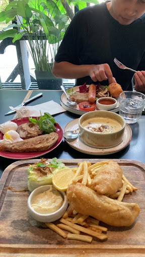 Read moreVisited this place on a weekday evening as recommended by a friend. Parking here is really tough took some time to find an empty slot. Apparently the signature here is the watermelon cake but we didn't try it. We decided to come here for the mains instead. Took a while before deciding what to get and we got an appetizer and 2 mains. The appetizer came was the crispy onion. Thought it would be something like onion rings turned out it looked like small strips of onion. The portion was decent but it looked quite glossy and we thought it looked quite oily. Turned out it was while eating and so would be better if they have taken a bit more time to dry the oil from the dish. Then came the squid ink spaghetti. The dish looked quite pretty in black and red can't wait to try it. Taste was pretty good and I didn't expect it to be on the spicy side. Portion was also decent for 2 to share. And they were quite generous with the prawns as well. Then came the pan fried halibut, which I thought was the best dish of the meal. The halibut was so well executed could taste the freshness and the juicyness of the fish. Also the mashed potato below the fish was so smooth and good I could have asked for more. My friend was quite surprised as she tried before and found it average but this time she said the food quality has definitely improved a lot. I find that it's worth visiting and the price is quite reasonable as well. Don't really need to order too much as the portions are quite decent for sharing. Good and...