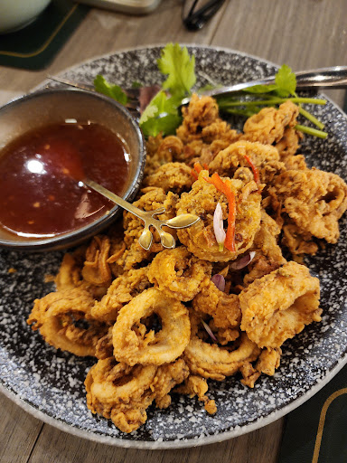 This is considered a new eatery that has opened in the neighborhood, and it has the potential to become popular. The environment appears clean, and it is hoped that they will maintain it in the future. The plates and cutlery are of better quality compared to other lower-ranking Thai restaurants. The ambiance is pleasant, making it a good place to meet clients or have family and friends gatherings, as they have large tables to accommodate such occasions. The waiters are adequately trained; they suggest options if they notice you're hesitant and patiently explain the differences between dishes that may appear similar, such as the choices of tom yum. However, there is room for improvement in their training. My husband stood at the counter for two minutes before your staff attended to him.