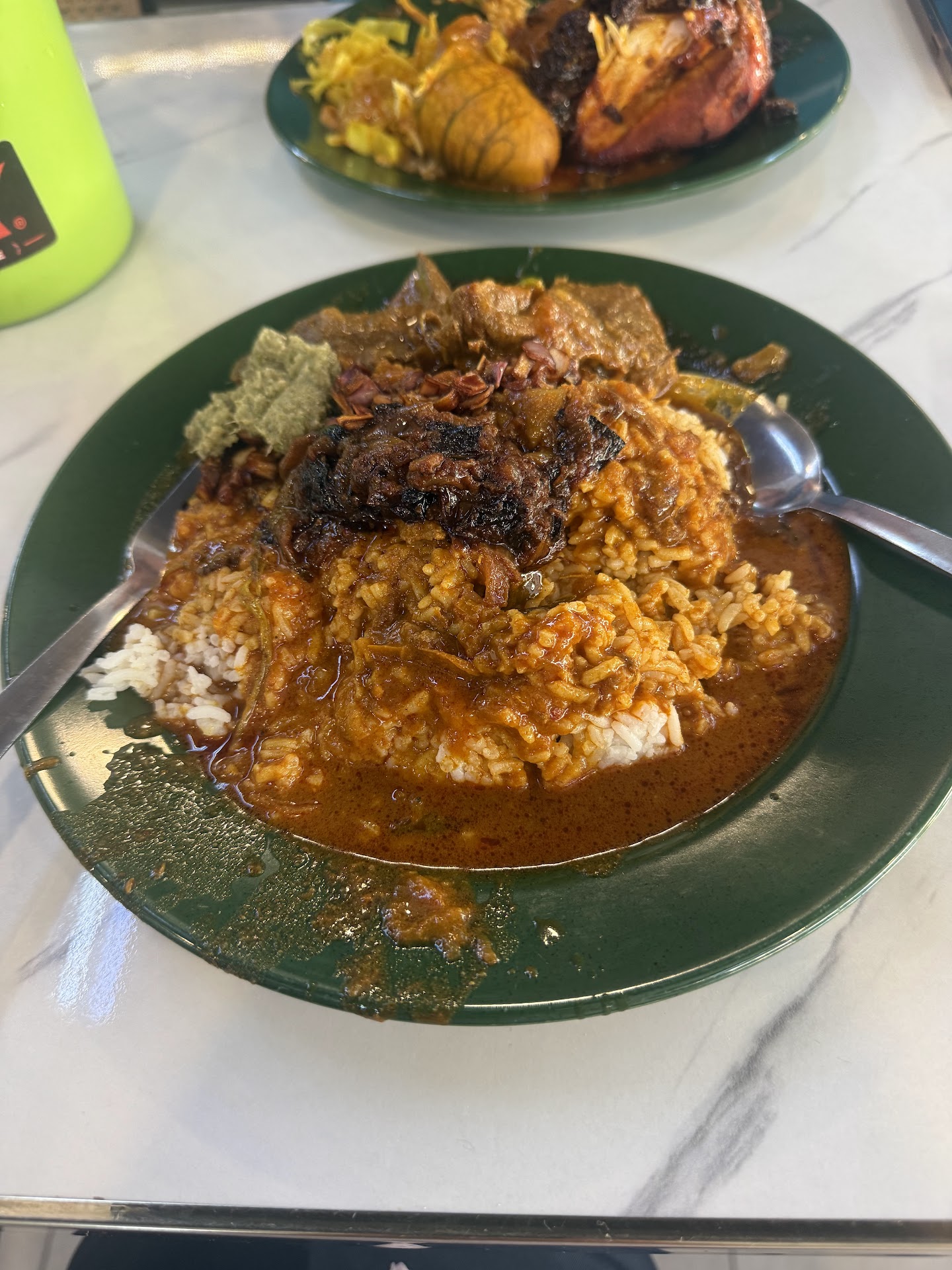 The meal itself was the real highlight. The restaurant prepared a special platter for us — a generous serving of briyani rice layered with tender lamb shank, giant prawns, fried chicken, boiled eggs, and dalcha gravy, all surrounded by sides like sambal, acar, and curry. Every bite was rich with spice and flavour, with the lamb standing out — soft, aromatic, and perfectly cooked. The prawns were crispy on the outside and juicy inside. The rice carried that authentic nasi kandar fragrance, and the sambal brought everything together with just the right heat.