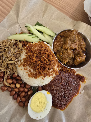 A solid plate of Nasi Lemak. Was it better than Village Park? No, but itās different. Rice taste good but could be a bit more fragrant. Sambal was spicy but the good kind. Bloody delicious. Egg, nuts and ikan bilis was standard. Cucumber felt dried so itās definitely been sitting there. Fried chicken, was good. Didnāt stand out but was a nicely fried piece of chicken. Still, not the main show, What stood out here, that I can safely say is the best is that beef rendang. You get decent rendang at other places but this one, you take a bite and it takes you back to your kampung. Literally makes you go for a second bite, raw, straight rendang to just taste it solo. The stuff you see on tv where the person closes their eyes to just soak up the spices. And it wasnāt just the spices it was the texture. That meat just melted in my mouth the moment it went in. So soft even my 80 year old grandma with no teeth could enjoy it. Mixed with the nasi lemak combo and fried chicken crackling, this plate of NL was š„. What I liked almost instantly was they gave us these tumblers for our drinks to make it cold longer. Love the attention to detail. Prices are very affordable especially for a shopping mall. Will include this place as a staple moving forward. Thereās a reason thereās a...