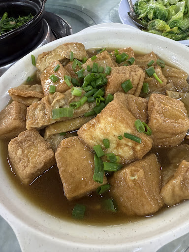 The food arrived promptly, and I must say everything was above average. The steamed fish head was cooked and garnished with lots of ginger, the taufu came with a lot of ingredients, the claypot vegetables was tasty, and the salted egg chicken wings was super good.