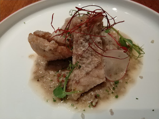 Fourth Course: Deep fried Fish with a Shiso Butter. Fish was overcooked, not seasoned (hence tasteless) and the skin was not crispy. The butter did not add much to the fish either. Definitely one of the worst dish.