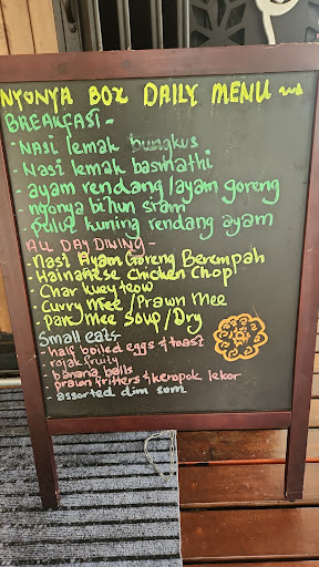 Ā Ā Ā Read moreWe met here at Nyonya Box for lunch today. The Blackboard menu didn't show any prices. It appeared to be empty as we could see no customers, other than the 2 ladies trying to order their lunch. The guy behind the counter appeared to be having great difficulty with the Point of Sale equipment to process the payment. When I finally got to order, they didn't accept cash, so we had the POS delay again. The other customers were sitting upstairs, hence the empty look. My Mee Rebus when it came was luke warm. I hardly ate any of it as it was so bland. My friend ordered Nasi Ayam Goreng Berampah. The chicken was pink and undercooked. I will not give them a...