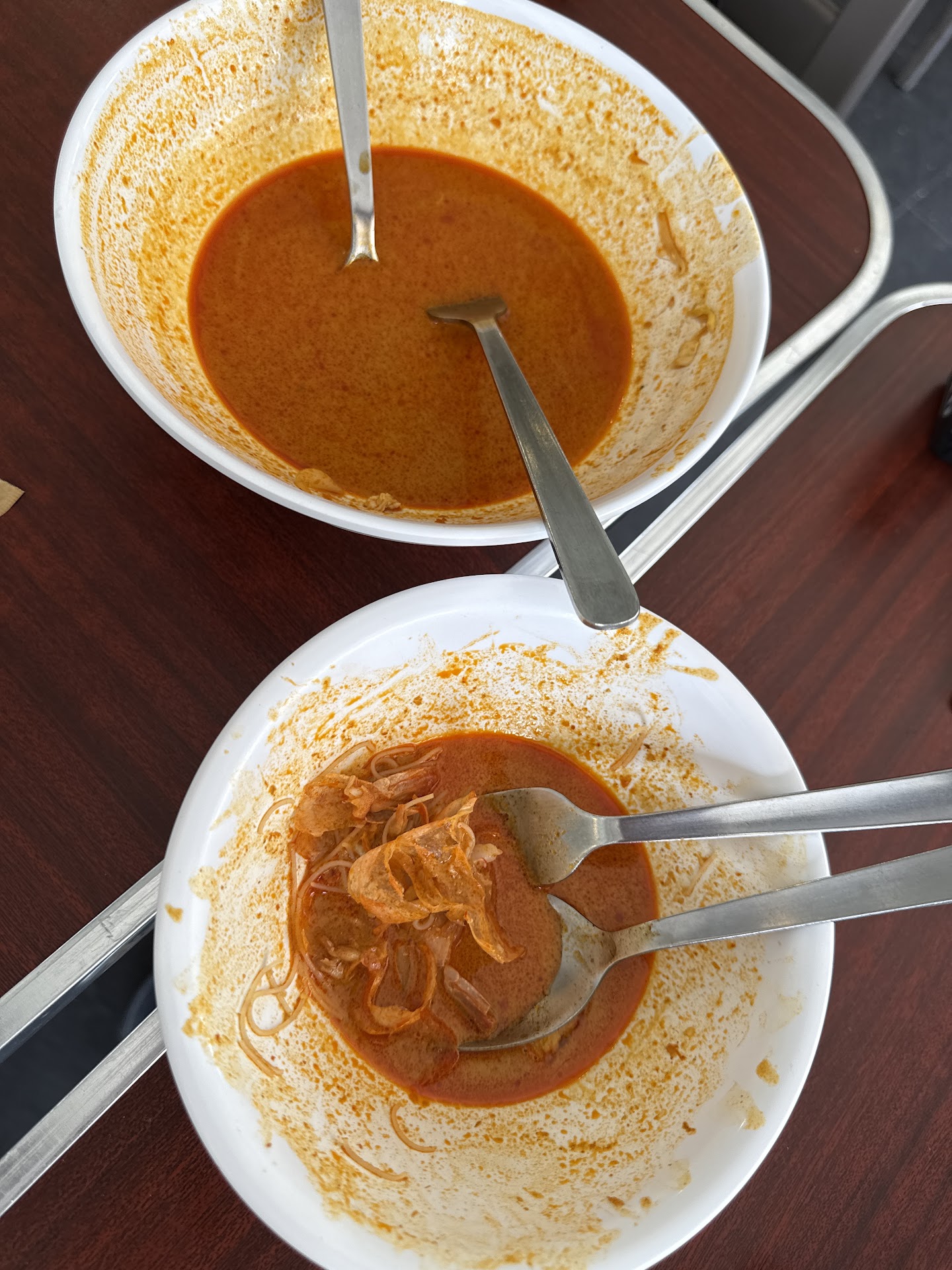 The broth is the star here: creamy, aromatic, and layered with just the right amount of spice and depth. It's not just spicy for the sake of heat — it's well-balanced, with a beautiful blend of coconut milk, curry spices, and that unmistakable umami that keeps you sipping until the last drop.