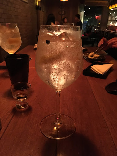 Palillos Yakitori Bar is a lively, buzzing place with a fantastic atmosphere. The design is cool and inviting, making you feel ready for a fun night out with friends. The large bar counter, open kitchen, and stylish interior design create a welcoming and energetic ambiance. There are a limited number of tables, so booking in advance is highly recommended. They also have a small patio with outdoor seating.
