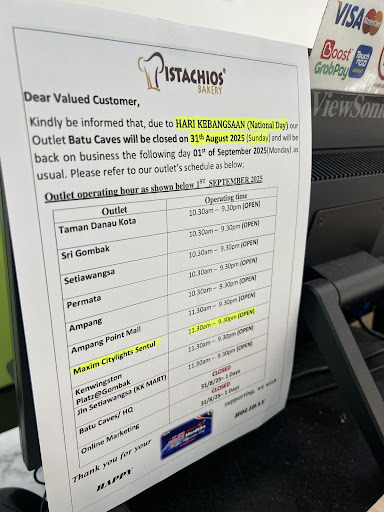 Went to get my usual cake this evening . The staff (female supervisor) that saw me waiting, as i requested my cake ignored (no eye contact no smile) my request completely and turned away and asked me to wait . While her colleague, a guy. Seems like a junior busy attending many customers. She was tryingn to make her self look busy walking around. She apparently is the supervisor. I think as a senior you set good example and unbiased customer service . As another customer came in after me she decided to smile and attend (colour bias ? ) .Maybe pistachio need to look into your staff attitude . The junior to apologized for keeping me waiting and quickly attended me after her. Supervisor need to learn customer sevice...