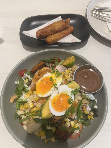 🍗 Char Grilled Garlic Chicken This one was a total surprise — in the best way! The grilled chicken was perfectly cooked: crispy on the outside, tender and juicy inside. The garlic sauce added depth and flavor. It was served on a bed of millet (yes, millet!) with a variety of veggies — every bite was a new flavor and texture. Wholesome, hearty, and fulfilling! 🌾🥦
