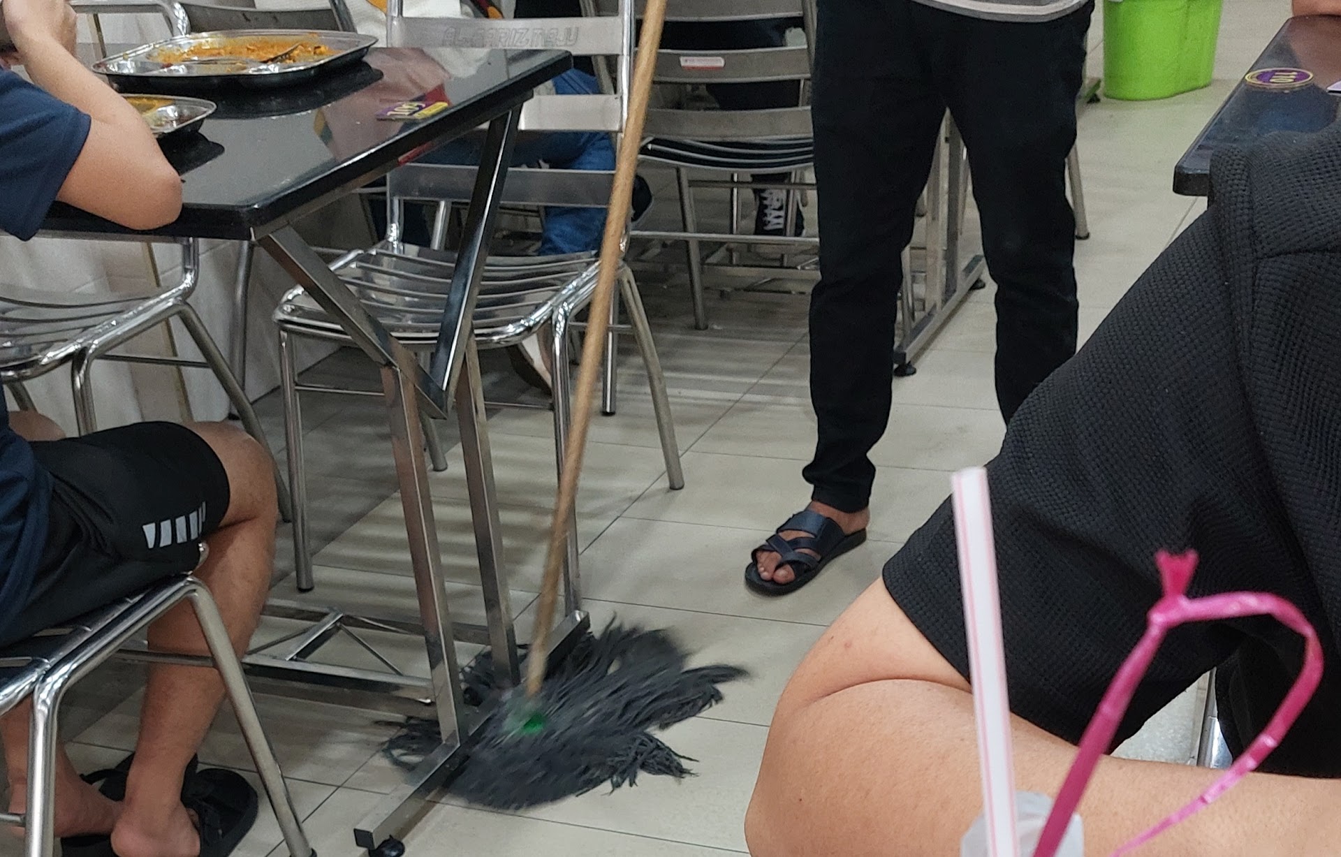 In addition, they don't even bother to avoid my legs when mopping the floor, not just me, saw him mopped other people's...