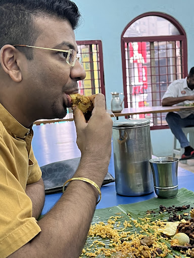 Pricing- RM30 My friend as in the pict: Ate Chicken Briyani Add ons: 2x Naatu Chicken Varuvaal⭐️⭐️⭐️⭐️⭐️ 1x Aadu Nall Ellumbu (Lamb Shank Curry)⭐️⭐️⭐️⭐️⭐️ 1x Masala Tea⭐️⭐️⭐️⭐️⭐️ 1x Nandu Rasem (Indian Spiced herbal Crab soup) Free ⭐️⭐️⭐️⭐️⭐️