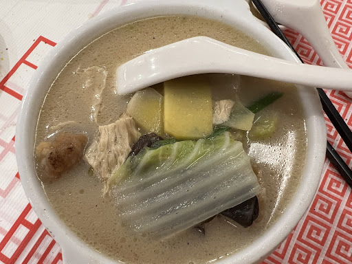 We ordered steamed fish, roast chicken, chasiew, bak-choy yam soup, lily bulb combo, rice, pot of tea, coke and green apple juice. We had to remind the service staff a few times to bring us the apple juice that we ordered together with other dishes. Our noodle came much later after we almost finished eating the other food. Mind you, there were only a few tables occupied with diners. Slow service.