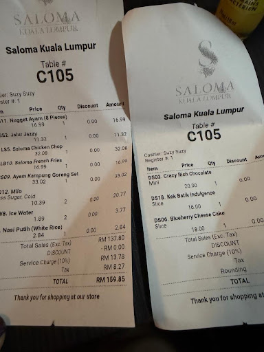 Final Thoughts, while the ambience and cleanliness of the restaurant were commendable, the food quality and service did not meet the standard we expected. especially from a restaurant with such a high profile. For a special occasion meal, it felt underwhelming. With improvements in hospitality and more consistency in the kitchen, Saloma could truly shine.