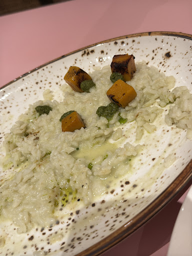 The first dish, โChicken Cutlet Milaneseโ, had an extremely dry, crumbly coating that was hard to swallow and left us reaching for water to wash it down. Next came the Pumpkin Casoncelli (Stuffed Pasta), which arrived much later than expected and was severely undercookedโthe pasta was so hard it was practically inedible. Finally, the โRisotto Pesto Pumpkinโ was visually underwhelming, with its pale green colour and barely-there pesto garnish. The flavor, or lack thereof, was the real letdown; it was utterly bland and unappetizing.