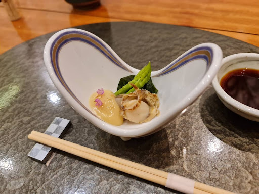 Service: very very normal, not up to par for the restaurant setting. Some staff members have communication issue that don't understand plain English. We were asking (a suspectedly new staff) what drink is complementary for the omakase set, and to our surprise, we were told that all drinks were on the house except for green tea. We were extremely confused and luckily we didn't go ahead with ordering all the sake and expensive wine. Upon checking with a more senior staff, it was indeed otherwise, the tea is free not the rest. On top of that, we can't secure a counter seat as it was supposedly fully booked (despite the counter was empty with 2 customers that night from 8 onwards), so food was served to our table in a corner semi private room, for the first few dishes, no one cared to explain to us what we were eating and only after we requested for some basic ingredient introduction, just then a senior staff came over to explain what's served. So with such experience it's hard to say that the service was good. Hence, no star.
