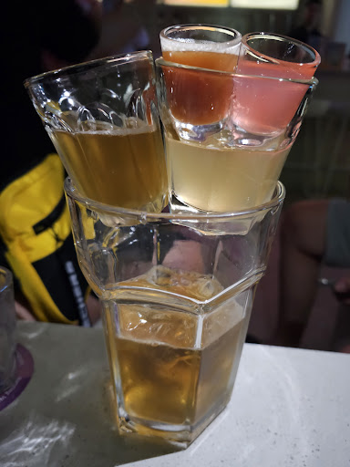 While the cave-like interior is unique, it desperately needs more airflow. The place can get uncomfortably stuffy, especially during peak hours, sometimes even developing a sweaty smell. The cocktails don't quite hit the mark in terms of taste. They often lean towards sugary and juicy, lacking the depth of flavor that discerning drinkers might look for. The pre-mixed nature from the tap limits customization (e.g. you can't ask for no sugar) and feels more like a gimmick than a thoughtful concept. The presentation of each drink is also the same and not creative, just drink in a glass. The food, unfortunately, falls short, giving pre-made and microwaved dishes that lack taste and freshness.