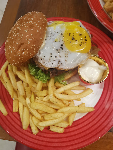 The Hangover Burger was a hearty delight, topped with a perfectly cooked sunny-side-up egg. The patty was juicy and well-seasoned, complemented by crispy fries on the side. It’s definitely a must-try for burger enthusiasts.