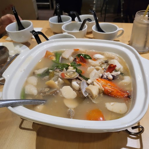 Read moreOverrated review I reckoned. Mixed feeling after a recent visit... A lot of areas need improvement though. Ordered two appetisers and four main dishes plus two desserts. Miang kham - betel leaves were small and dry, sauce tasted bad Mango salad - mango overripe and soggy instead of the usual crunch Prawn with glass noodles - burnt, so glass noodles were stuck to the pot. Too much salt added as well Tom yum seafood - fresh seafood but could be less salty Plain egg omelette - fluffy and nice Fried squid with basil leaves - squids were rubbery and swimming in a watery and bland sauce Tub tim krob - too sweet, not mad about the pink colouring added Mango sticky rice - tasty Others: We, a party of five were given a table for four - far too small, not enough place to lay out all the food as well Supposedly hot tea in pot was served cold Food was served swiftly after order was placed. Unsure if the quality was compromised though as a result of...