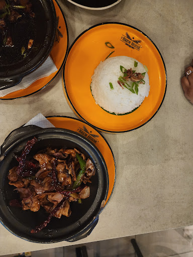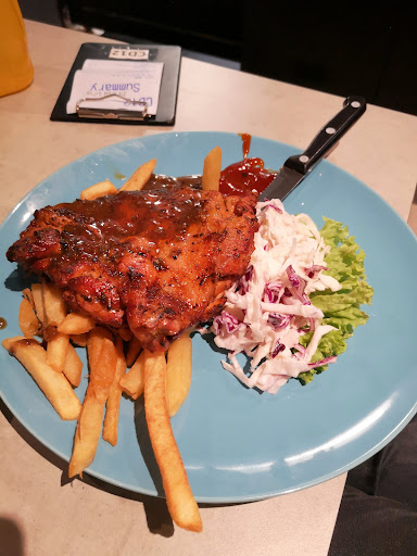 Read moreThe name sounds more of a typical western bar and grill house than a local east and west fusion restaurant. We ordered our lunch online and its delivery was prompt and before 1PM. Our dishes are both western and local fares - cheezy clams pasta, pork burger set, fa lum pao rice and 4 cuts of siew York. The clams pasta boast of pasta, local lala, chilli in thin cheezy sauce which was surprisingly very appetizing for a non cheese lover like me. I had the tried and tested fa lum pao rice that you could get at any average Chinese restaurants. Something in it make a difference maybe its pickle veggie making it less oily but more delicious. The pork burger set which is not offered in halal fast food joints is huge in comparison and it was rated as a thumb's up by my son. Their siew york cut set comprises 4 pieces in all is tender and nicely matched with less fat making it an attractive draw especially for those on diet. I almost forgot to mention its hard crust duck meat peaches pizza which is delectable unlike the fat...