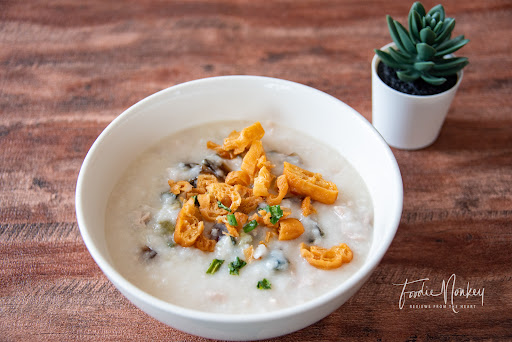 Taste: The texture of the porridge was very smooth & had a generous amount of century egg & meat drizzled with spring onions and completed with crunchy dough fritters.