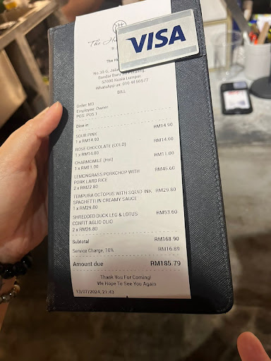 When I was making payment at the counter, I asked the waitress / cashier they charging the same for duck oglio olio? She just said yes and continued her work. I just walked way because I know it's the end of their shift and I didn't wanna make a scene. You can see it's being charged x2 for duck aglio olio at the receipt attached.