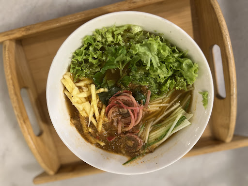 4- Green soup ramen It is a hand-made ramen, mushrooms, carrot, pine nuts...
