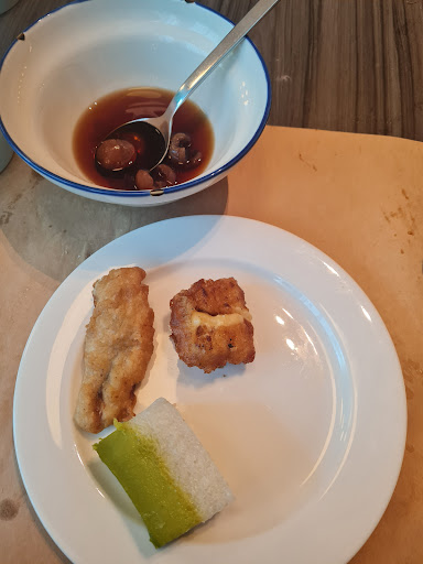 Grilled chicken with blackpepper sauce - underseasoned Braised steam tofu - salty Pasemboq padang kota - salty