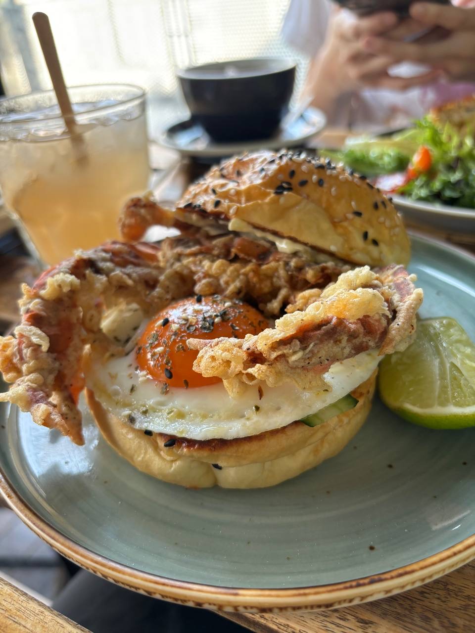 โFood โขsoft shell crab burger -One of the best burgers I had, expected it to be quite heavy due to the sunny side egg and fried soft shell crab but that was not the case. The soft shell crab wasn't oily and was perfect paired with the cucumber and lime provided on the side. This overall made for a refreshing burger and definitely was one of the best burgers i had to this day.