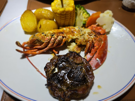 The garlic bread was good along with the oxtail soup. The bun they give as starters with cheap margarine is meh. The lamb platter and surf and turf was utterly disappointing. Each item cost above RM70 and as platters, they come with only one portion of meat, some veges and some potatoes. There were literally only 3 pieces of small meat for the lamb platter and for the surf and turf, the lobster was cut in half and covered in cheese. The actual lobster were tiny morsels. The cheesecake was alright.