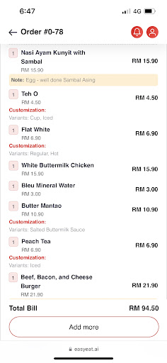 ok we go have a seat dekat another free table. 6.30 i make a payment for my nasi goreng pataya, lemon iced and nuggets.
