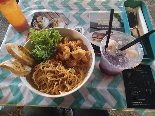 The bad: the pasta sauce was a bit on the spicy side, with no real flavor. The pasta lacked salt so it ended up being a bland-spicy sort of taste the bread on the side was hard and salty. I was expecting it to be garlic bread but it was not so since it's an outdoor space so it was a bit hot, but I went at night so it wasn't much of an issue