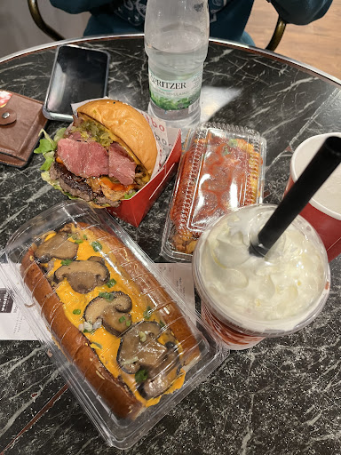 Came here just before peak dinner hour. Full house in minutes after we arrived. The moment i step into this restaurant, my nose was hit with the typical fast food burger joint. I was expecting smoke house smell. Walked to the counter and a quick skim of the menu and noticed they dont serve a wide variety of items. Good for them. The lesser the items, the higher the quality. Supposedly. So my wife and I ordered one main each (Smoked beef burger and cheesesteak) and a coney curly fries as sides, one strawberry milkshake and a bottle of water. Since we ordered before the store gets busy, our foods arrived in just a few minutes. Here i thought they serve freshly made burgers but based on the quick serving time i assumed they are pre-made, just like any other fast foods. Also, our foods arrived with almost room temperature, not even warm and therefore proved my assumptions.