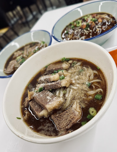The rich, dark broth immediately signals depth and slow-cooked comfort. It carries that glossy sheen that hints at marrow and collagen — a hallmark of hours of simmering. The steam rising from the bowl, coupled with the neat marbling on the beef, makes it clear this is a hearty, soul-warming dish.