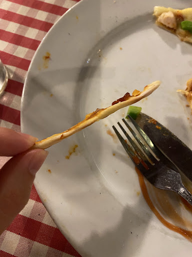 Got a mumbled answer back Forgave the guys English, not his fault Boy was it a bad decision by me to stay and eat here. !!! Worst yep , thought about it , definitely the worst pizzas we have ever had Obviously frozen Brought in cheap rubbish No tomato base sauce Beyond bland cheese Totally utterly tasteless