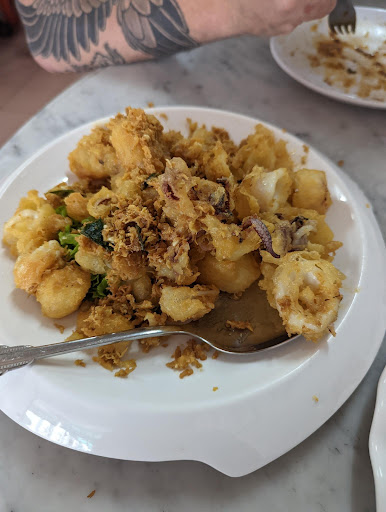 Read moreProbably more a 3.5 as its value for money. Came here at 5pm to have an early bite to eat and overall experience was a low fuss, quick service and some tasty home-style food. We chose to come here after seeing this place full of local families on two nights returning to our hotel - so it was full of promise. Although the place does specialise in crab, we were a bit crabbed-out after our KL experience so opted for the salted egg squid, sweet and sour cockles, sambal kangkong and tofu with mince. We found all the dishes were tasty in their own way, but probably would reconsider ordering the cockles again. Whats great about this place is you can order the small/medium/large sized plates for most of the dishes, so it gives small groups the option to try many things - which is what we did. Would recommend if you want a low-key chinese resturant to eat at. Total bill for 4 dishes plus rice and 2 lime drinks came to ~64RM. Note: photo of tofu dish is half eaten, it came with around 7 or 8...