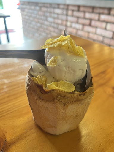 Dropped by for an after-meal dessert. This place provides an option for vegan folks as their ice cream uses coconut milk. Could easily taste the intense coconut milk from their signature coconut ice cream that is not overly sweet. The boss shared they did not add additional sugar but has adopted the sweetness from the fruit. The ice cream is topped with fresh coconut flesh and a topping of ur choice. Selected corn flakes which i thought went really well with the ice cream, adding on a good crunch n texture to the whole experience.