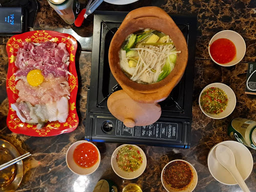 ◾Mookata - instead of spicy soup, he asked for plain one with all the essential herbs inside for the flavour. We mixed the egg yolk with the meat and cooked in the soup, lastly dipped the meat into the sauce before consuming. ◾stir fried kailan with roasted pork belly - gotta love this dish. ◾som tam - everything hits the right spot with me and the addition of peanuts (some didn't give peanuts at all) gave the crunchy element another notch. ◾deep fried pork ribs with chilly sauce - it got me nibbling piece by piece... ◾Thai style steamed squid - cooked nicely and in timely manner without that rubbery texture (overcooked!) complete with the sourish and spicy soup... Almost got me drinking everything if not for the Tom yum that came shortly. ◾kerabu kaki Ayam - a bit sweet but no fault with the crunchy chicken feet skin. ◾Stir fried spicy pork - my least favourite dish of the night. By all means it was good but overshadowed by other excellent dishes. ◾Seafood tom yum - the right consistency in terms of sweetness, sour and spiciness. Southern style Tom yum with generous amount of seafood inside.