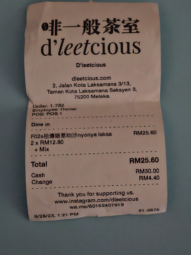 Read moreD’LEETcious Nyonya Laksa Empire offers a delightful dining experience with its inviting ambience and friendly staff. The Nyonya laksa here is simply outstanding, made with fresh ingredients that enhance its rich flavors. The nasi sambal provides a perfect balance of spice and deliciousness, while the Nanyang kopi and white coffee are brewed to perfection, just the right amount of sweetness.